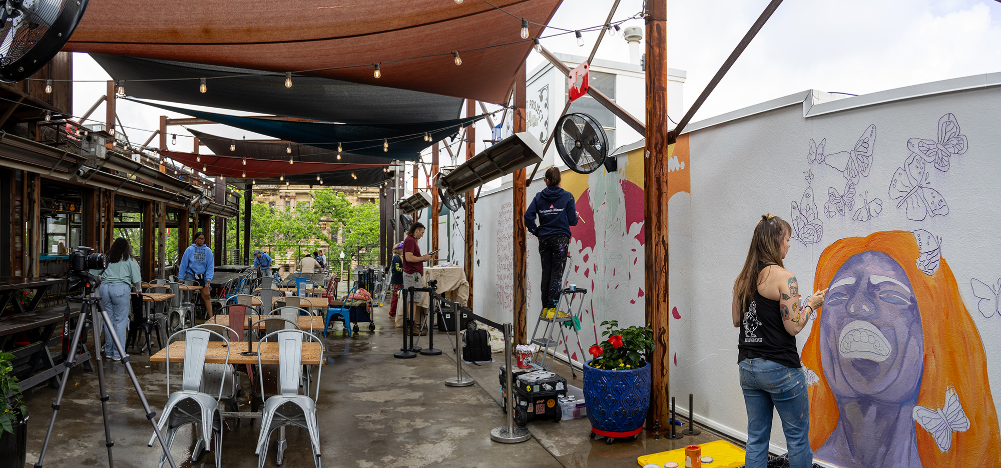 In collaboration with the Greater Denton Arts Council (GDAC), LSA Burger Co. hosts its Annual Mural Art Project. Now in its 9th year, six artists curated by a committee led by GDAC will have the opportunity to replace the murals marked on the second-floor walls over the weekend of May 1, 2026.